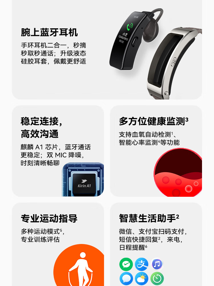 商品名称:华为手环B6通话手环送男女友智能运动蓝牙耳机男女穿戴防水心率睡眠血氧监测扫码计步 曜石黑-运动款