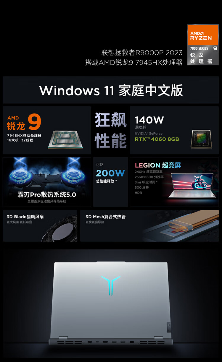 商品名称:联想拯救者R9000P 16英寸游戏笔记本电脑(8核16线程R7-6800H 16G 512G RTX3060 2.5k 165Hz高色域)灰