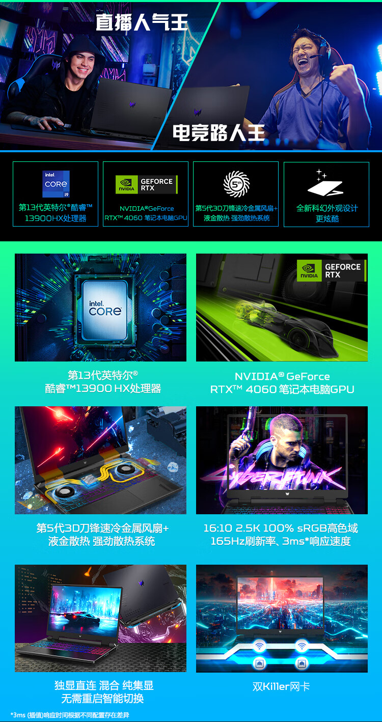 商品名称:宏碁(acer)掠夺者·擎Neo 16英寸2.5K电竞游戏本 第13代酷睿H55 工作站级笔记本电脑(14核i5-13500HX 16G 512G RTX4060)