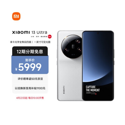商品名称:小米13Ultra 徕卡光学全焦段四摄 第二代骁龙8处理器 2K超色准屏 IP68防水 12+256GB 白色 小米手机 5G手机